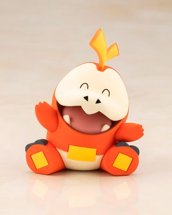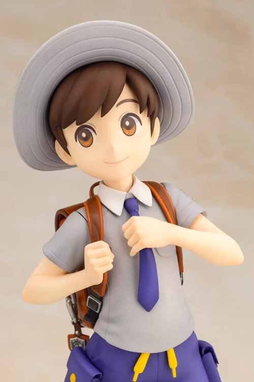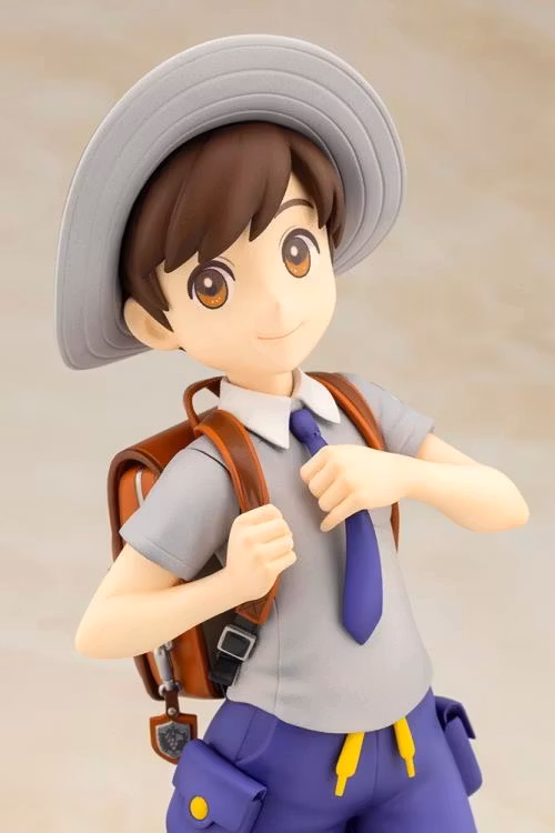 Hans Uva Academy-uniform och ryggsäck har målats och texturerats för att ge en ännu mer realistisk känsla. Vid hans sida står den charmiga Fuecoco, troget återgiven i små detaljer.